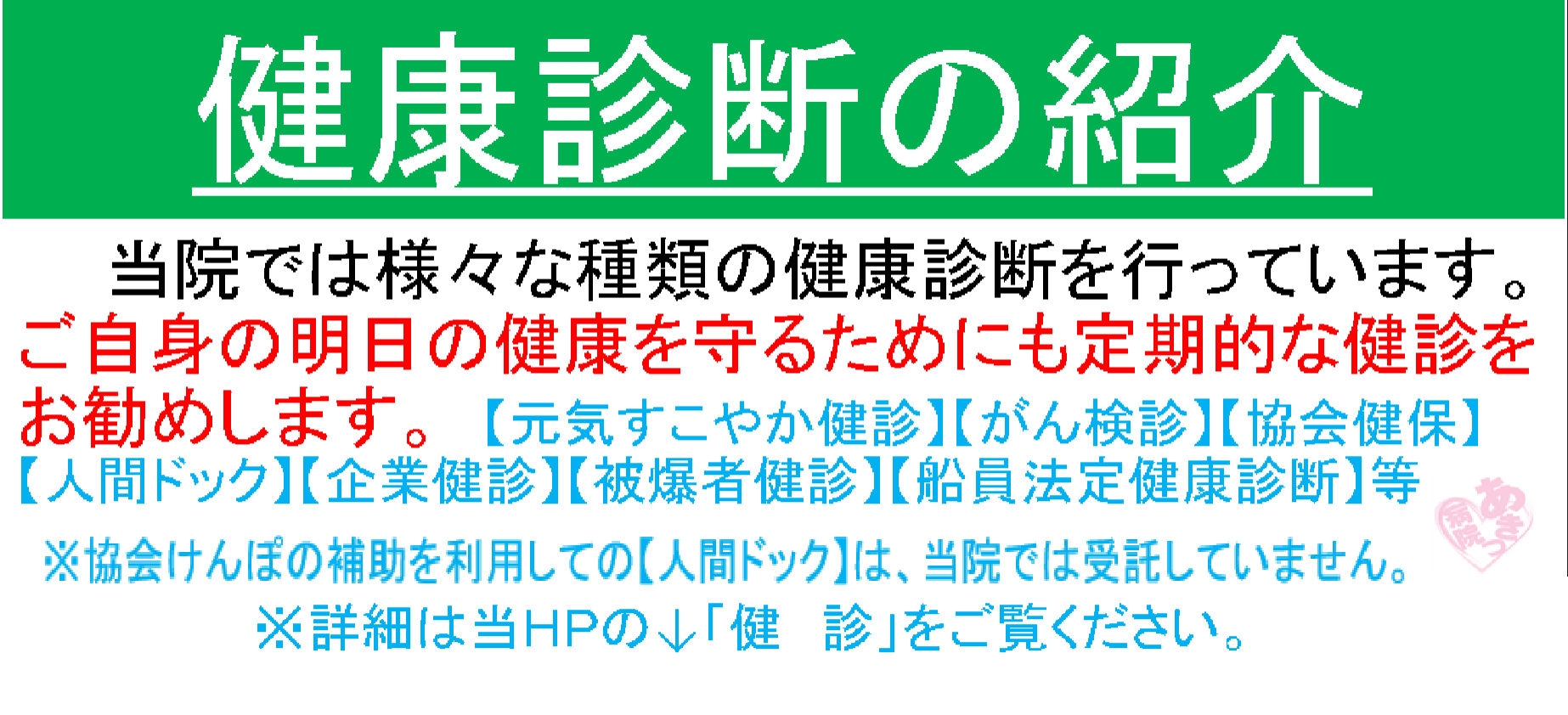 当院の健診メニューのご紹介 など
