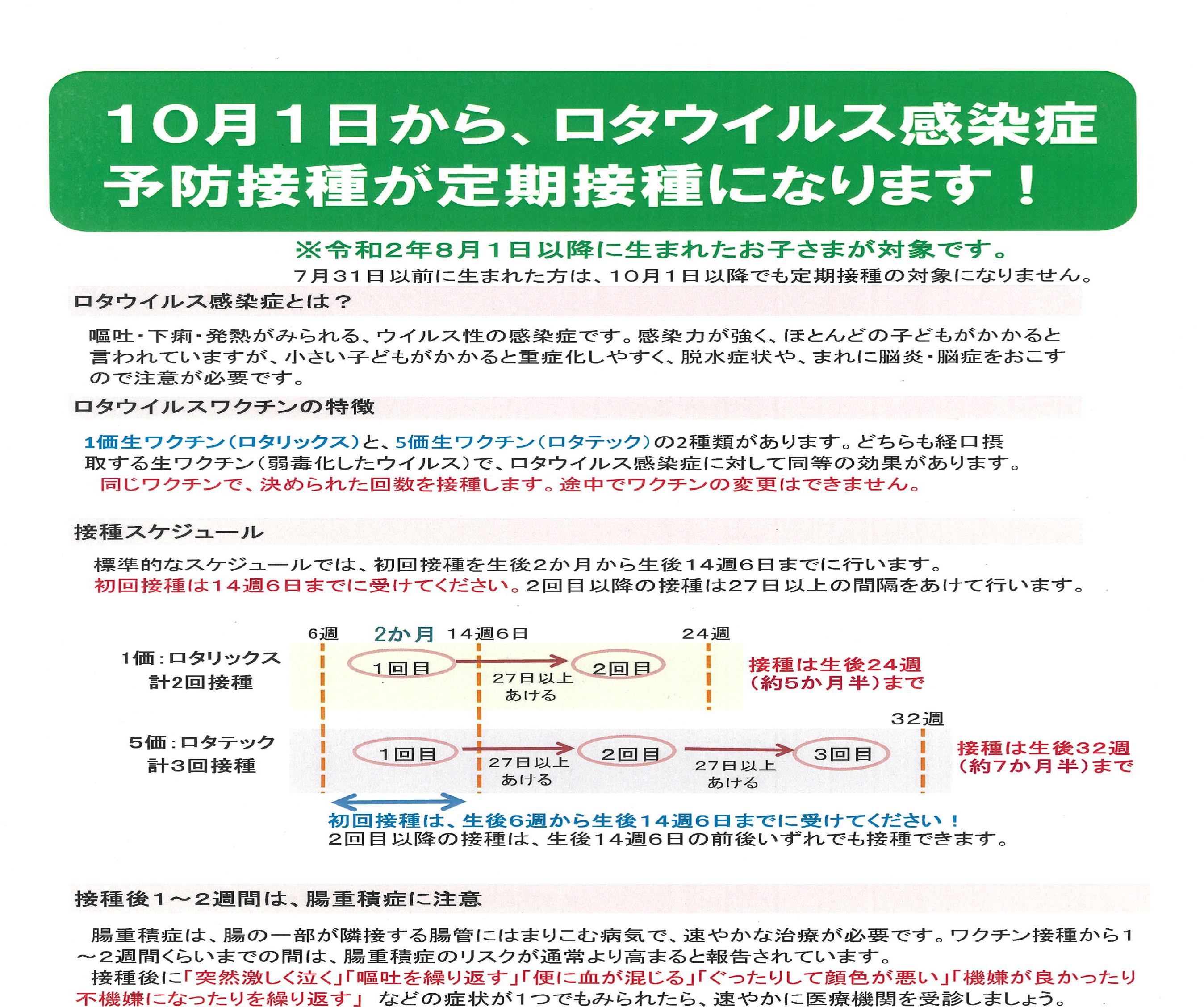 10月1日からロタウイルス感染症予防接種が定期接種になります。